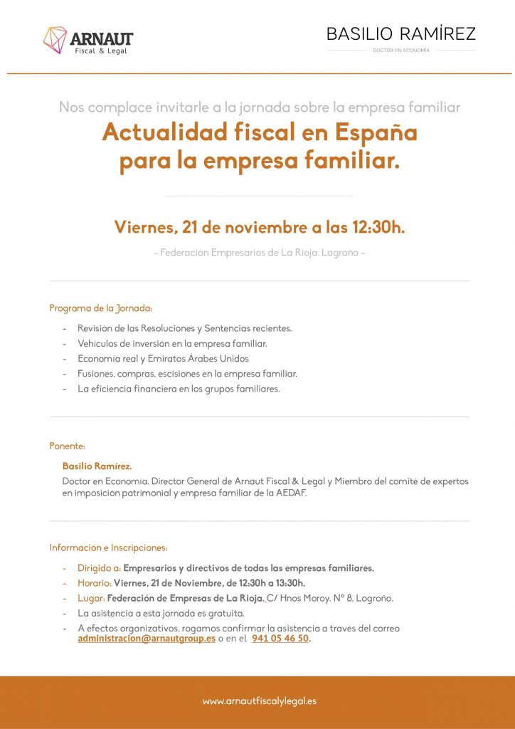 La asistencia a esta jornada es gratuita. A efectos organizativos, rogamos confirmar la asistencia a través del correo «administracion@arnautgroup.es» o en el teléfono 941 05 46 50